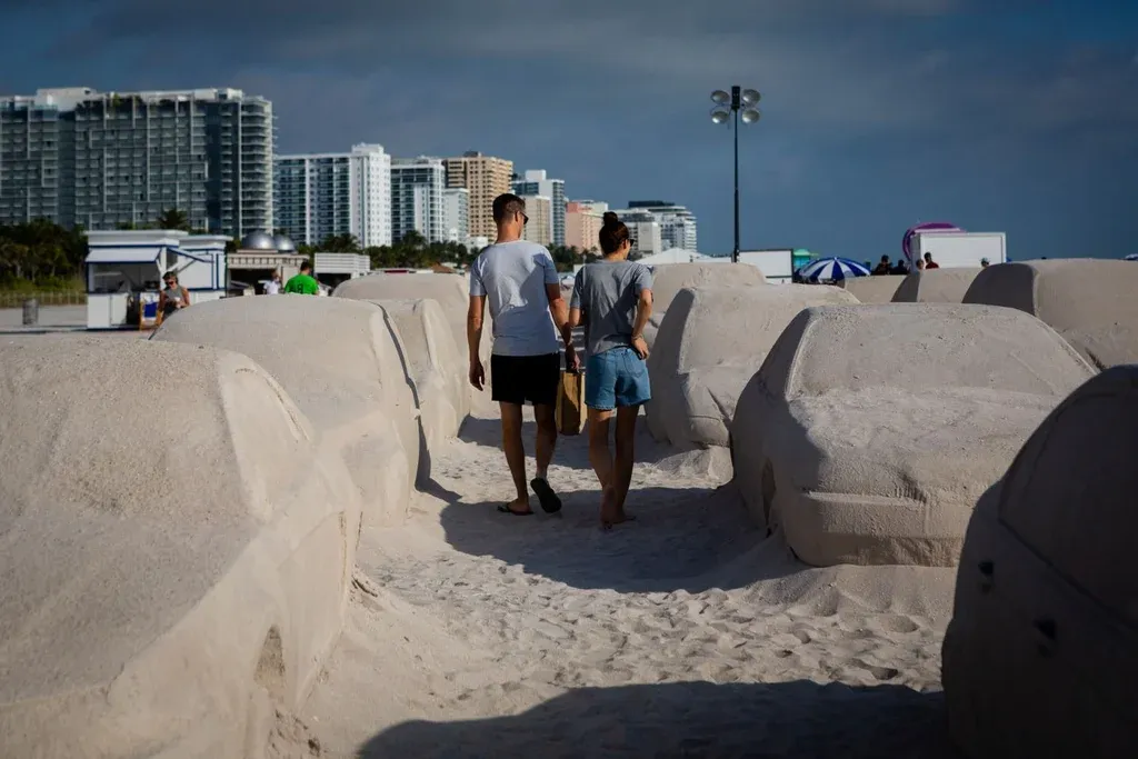Su obra en la playa es parte de las numerosas exhibiciones e instalaciones que tienen lugar en Miami aprovechando el impulso que les da la feria Art Basel, que reúne a miles de coleccionistas, críticos y artistas de todo el mundo.