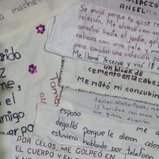 Valenzuela se sumó a este movimiento y observó que muchos de esos asesinatos en realidad eran feminicidos, y fue entonces cuando comenzó a bordar solo cuando las víctimas eran mujeres. “No eran lo mismo porque a nosotras nos matan diferente. Además de asesinarnos, a las mujeres nos violan o cercenan los pezones”, explicó.