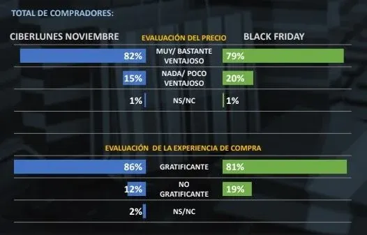 La evaluación de los precios y la experiencia de compra en ambas jornadas es muy positiva pero en comparación, el Black Friday recoge menos niveles de gratificación que el Ciberlunes.
