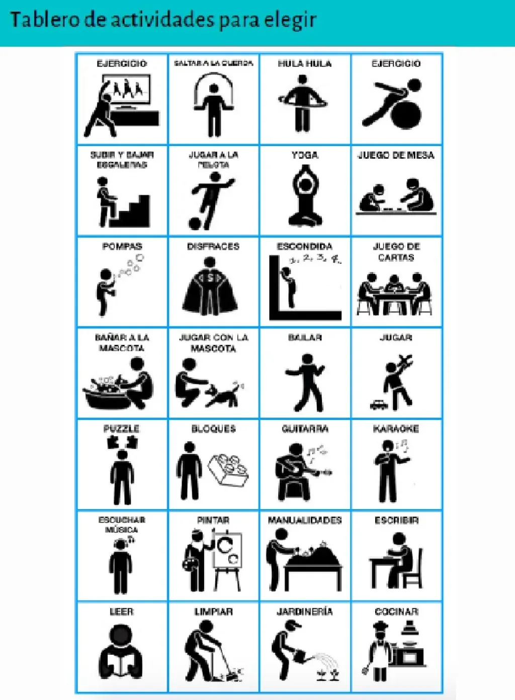 Por eso, es importante que incluso dentro de sus hogares, estas personas cuenten con una rutina estipulada. Garrido dijo que no alcanza con decirles, “por un tiempo largo no vamos a ir a la escuela”, sino que diariamente se les debe decir ‘hoy no vamos a la escuela’ y presentar así la rutina del día. Lo fundamental es brindarles tranquilidad con una agenda organizada, que puede contar con la ayuda de imágenes (ver tabla de actividades). Se pueden incluir actividades escolares (sin sobrecargarlos), tareas domésticas, lecturas, juegos y clases de gimnasia por YouTube. También se puede permitir el uso de pantallas pero esto tiene que ser particularmente regulado.