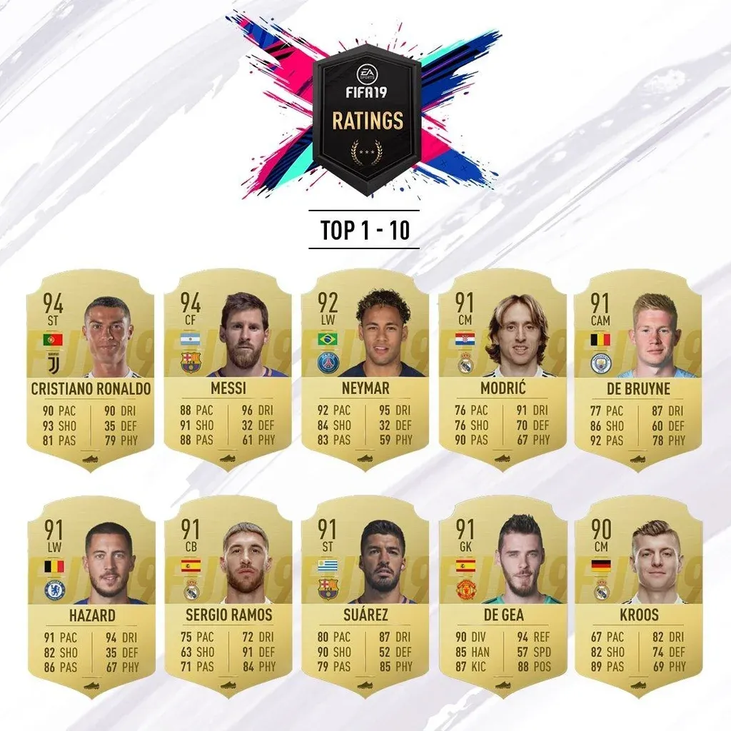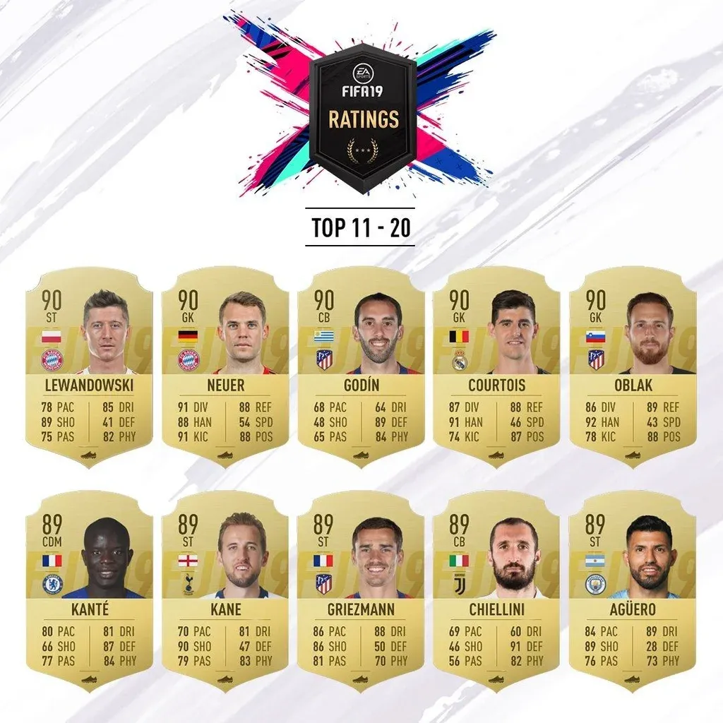 Luis Suárez es el que aparece mejor rankeado, ubicado en el puesto ocho con 91 puntos de un total de 99. Para tener una referencia, los dos mejores en el FIFA 19 serán Lionel Messi y Cristiano Ronaldo, ambos con 94 puntos.