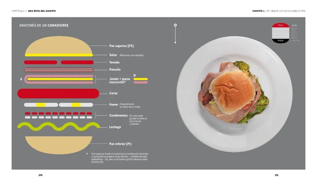 Del libro "Chivito" Chivito LAvecchia Pero más allá de esa emocionalidad chivitera que abraza a los uruguayos por la apropiación misma del invento, Laborde destacó que el chivito tiene todos los ingredientes que apasionan en Uruguay bajo una lógica acumulativa de superposición y yuxtaposición de sabores –que sucede también con los sándwiches olímpicos y las milanesas a la napolitana–. Esa fue la misma lógica que se extendió después del invento de Cabronaro a las hamburguesas completas y las de carrito.
