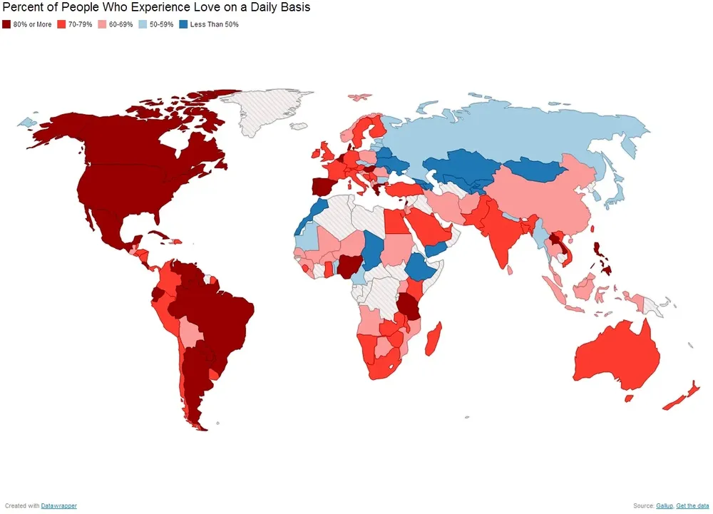¿Experimentaste amor ayer? Esa fue la pregunta que la consultora Gallup realizó en 136 países del mundo, para elaborar el “mapa mundial del amor” con motivo del día de San Valentín, que publica este viernes la revista Atlantic.