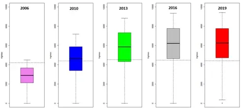 Gráfico 2. Gráficos de Caja de los ingresos individuales totales.