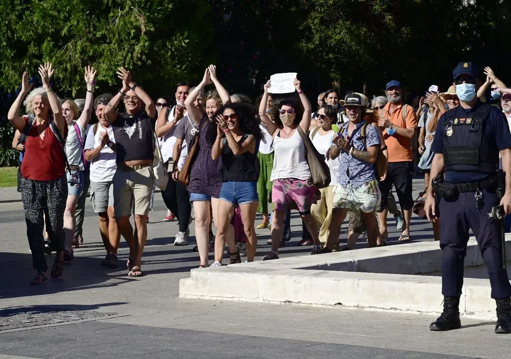AFP "Nos están obligando a llevar una mascarilla, nos quieren dejar en casa prácticamente encerrados. Nos están engañando continuamente hablando de rebrotes. Todo eso es mentira, la pandemia como tal ya no existe", afirmó.