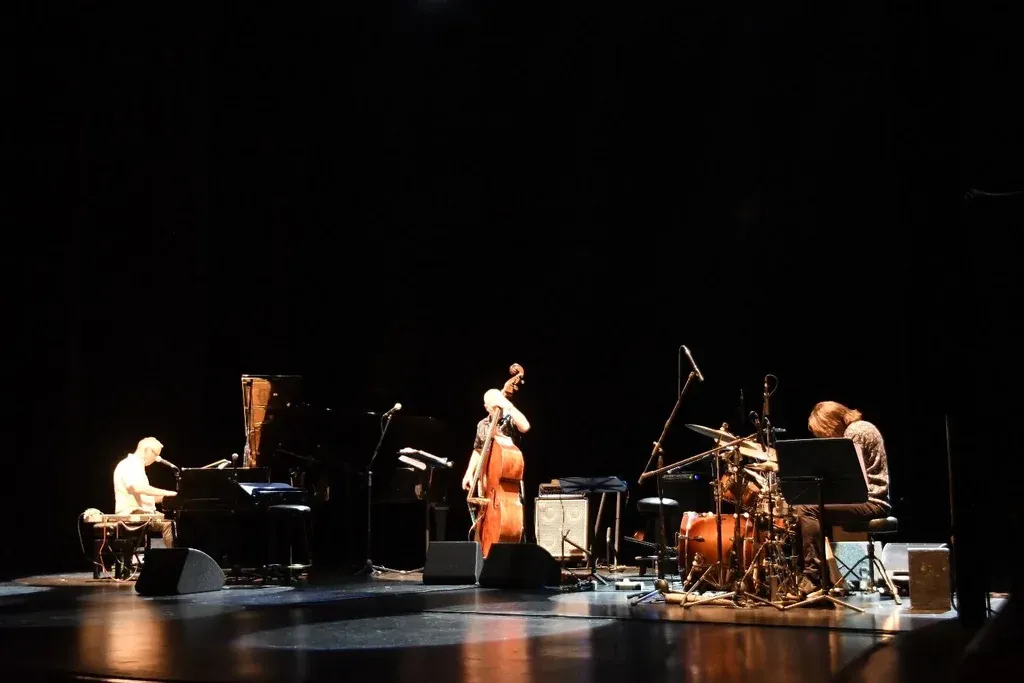 Las baquetas de Martín Ibarbururu empiezan a tocar la batería, se abre el telón y las luces del escenario resaltan el lustrado del contrabajo que sobrepasa la altura de Popo Romano. Sus primeras notas graves se mezclan con la percusión y el último en empezar a jugar con la música es Hugo Fattoruso, el ganador del premio Grammy Latino por la excelencia musical, el guía y figura de la noche en el Solis.
