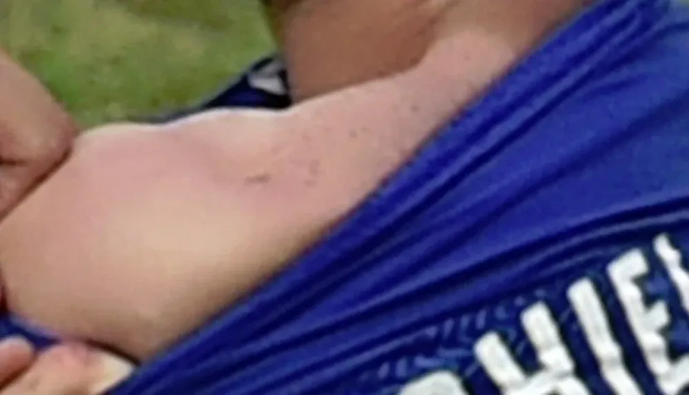La foto de AFP no permite concluir nada. Si bien se ven unos puntos, puede ser un lunar en su espalda. Y por ahí puede ir la defensa de Uruguay: no hay pruebas de que efectivamente lo haya mordida.