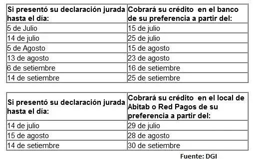 En caso de tener saldo a favor, el contribuyente podrá elegir que la DGI le deposite el saldo en su cuenta bancaria o cobrar en las redes de cobranza habilitadas, de acuerdo al siguiente detalle