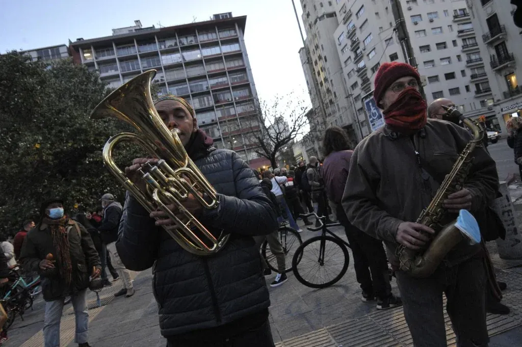 Los músicos tocaron frente a la Intendencia de Montevideo