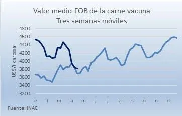 Ese afloje del mercado internacional de la carne ha pasado factura a los niveles de faena y también sobre el precio en dólares que reciben los ganaderos por su materia prima.