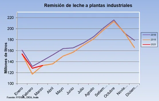Aunque en marzo la remisión de leche a plantas industriales se estancó y quedó en los mismos niveles del año pasado, el primer trimestre cerró con 451 millones de litros de leche, lo que arrojó un incremento de 2,7% respecto a igual período del año pasado. Sin embargo, las perspectivas a corto plazo para los mercados no son las mejores. Conaprole –la empresa que concentra casi el 80% del mercado– la transmitió a sus socios hace un par de semanas que si bien estaba vendida hasta mayo, el mercado interno había sentido el frenazo económico por la pandemia y el frente externo presentaba incertidumbre para los futuros negocios por la salud de los principales destinos. Brasil no estaba comprando, mientras que Rusia (un destino fuerte para la manteca) y Argelia (fue el principal mercado para la leche en polvo en 2019) tampoco mostraban interés en cerrar nuevos negocios. El reciente desplome del petróleo es un factor que pega fuerte en las economías de estos dos últimos países.