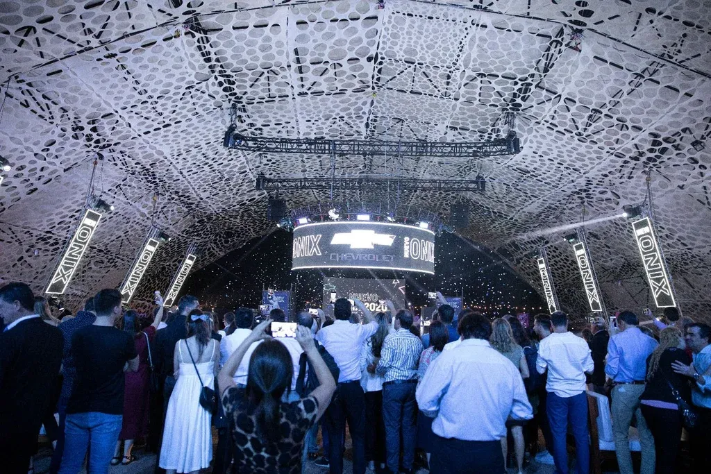 El complejo Otro Mundo, conocido como lugar de fiestas electrónicas, se llenó de luces y papelitos celestes lanzados para celebrar el lanzamiento del nuevo Chevrolet Onix de General Motors en dos carrocerías: hatch y sedán.