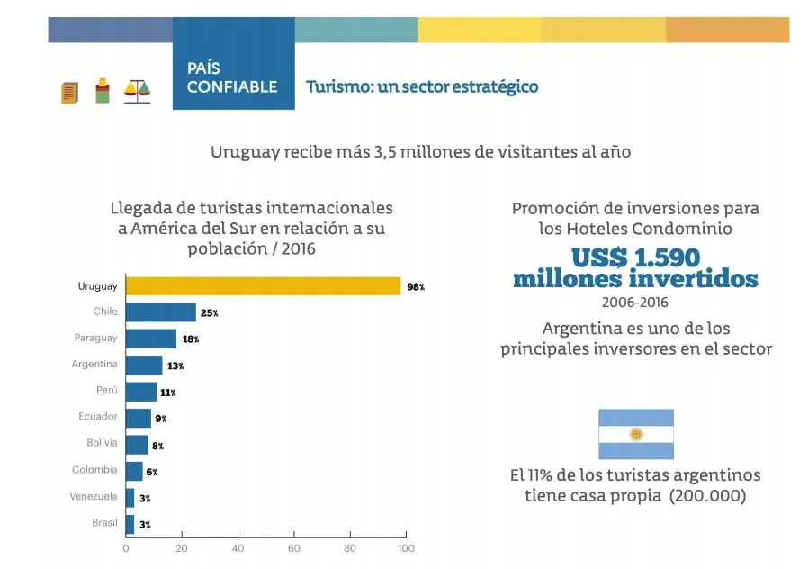El 11% de los turistas argentinos que llegan a Uruguay tiene una casa propia o de su familia en Uruguay, lo que corresponden a unas 200 mil personas. El dato lo presentó en 2017 el entonces ministro de Economía, Danilo Astori, en el Congreso de Desarrollos e Inversiones Inmobiliarias en Buenos Aires.