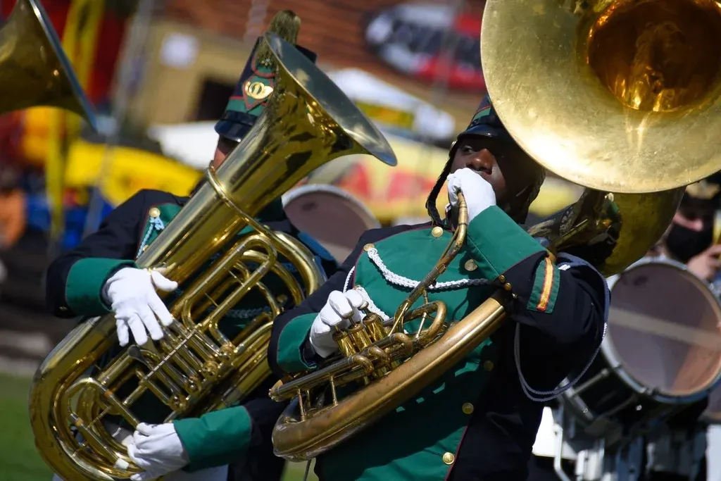 Las bandas de músicos la Fuerza Aérea, de la Armada Nacional y del Batallón Florida de Infantería fueron las encargadas de darle un marco musical al acto, ejecutando desde el ruedo.