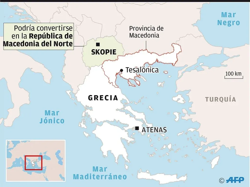 Macedonia está rodeado por Grecia al sur, Albania al oeste, Kosovo y Serbia al norte, y Bulgaria al este. Pero las principales tensiones las tiene con Atenas. Los enfrentamientos entre ambos países se remontan a la época de Alejandro Magno, rey de Macedonia en el siglo IV a. C., cuando ese gran conquistador se quedó con todo el territorio helénico, y más. El choque más reciente tiene que ver con el nombre del país. Para los griegos, Macedonia es la denominación de una provincia al norte de su territorio que justamente, en la Antigüedad, era parte del Reino de Macedonia. Y no aceptan que un Estado tenga ese mismo nombre.