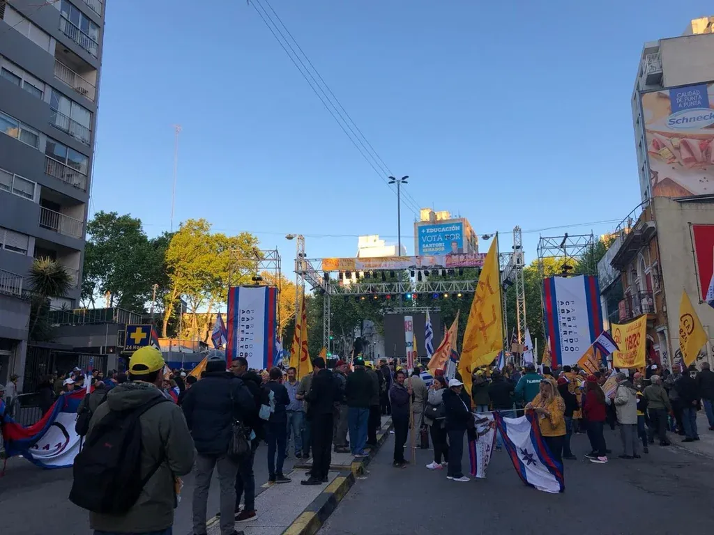 Al costado del escenario, un hombre de 60 años asentía con fervor a los dichos del candidato, con los ojos cerrados y una bandera de Uruguay apoyada contra el pecho. Cuando Manini Ríos acusó a Nicolás Maduro de decir "muy suelto de cuerpo" que "se está cumpliendo a rajatabla lo dispuesto por el Foro de San Pablo", el veterano abrió los ojos de par en par, blandió el pabellón, gritó: "¡dictador!" y fue coreado por los militantes que lo rodeaban.