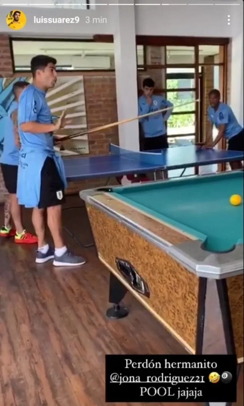 Twitter Lucas Torreira En otra imagen, de la fecha FIFA de octubre, se ve a los futbolistas jugando al tenis de mesa sin tapabocas.