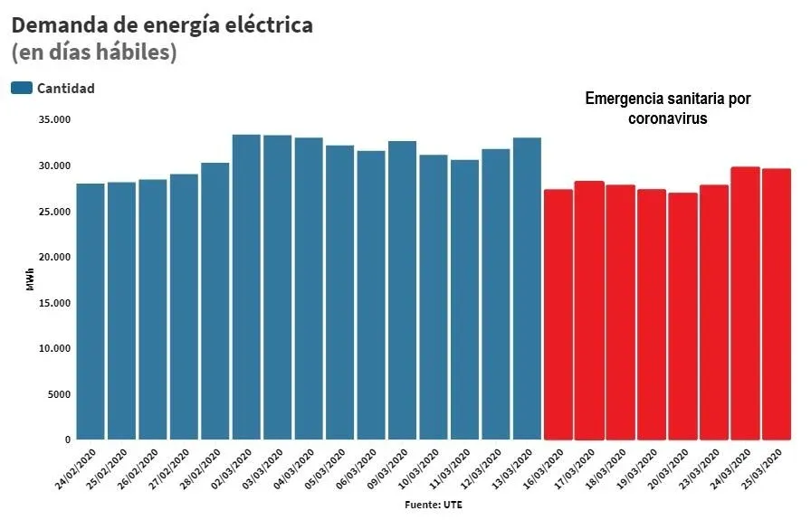 De todas formas todavía resulta difícil cuantificar cuánto se debe netamente al efecto de la cuarentena en la actividad y cuánto a la variación de la temperatura, según dijo a El Observador el gerente de la Administración del Mercado Eléctrico (ADME) Ruben Chaer. En la medida que los días han sido más templados ese aspecto incide en un menor encendido de los equipos de aire acondicionado. Esa práctica se hace también más extendida estando en el hogar que si las personas están en la oficina.