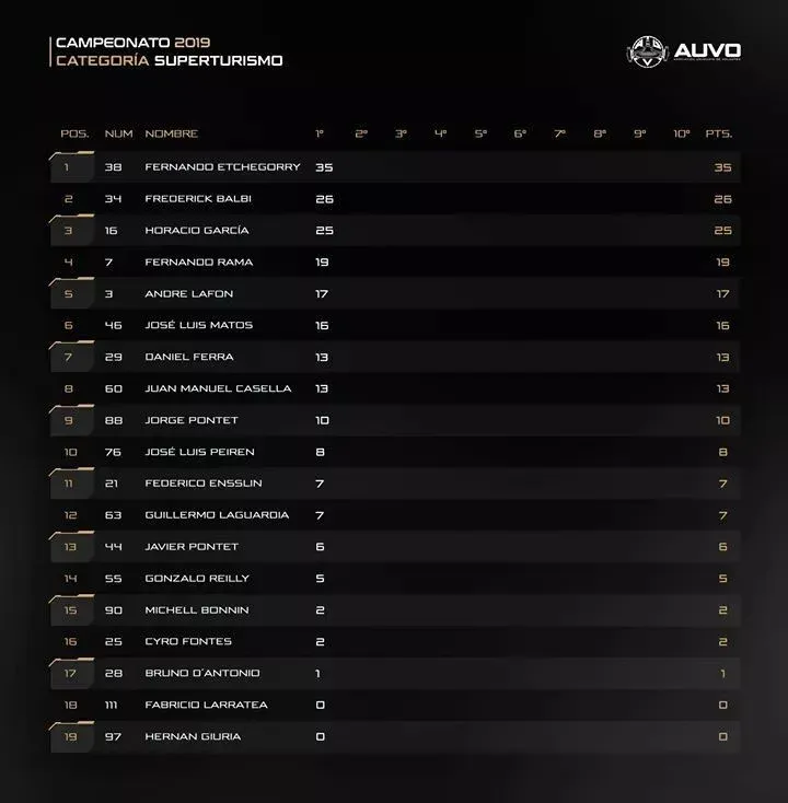 Superturismo, la categoría espectáculo y máxima expresión del automovilismo de AUVO, está en una temporada que a juzgar por la primera fecha, la paridad será el común denominador a lo largo del año. A razón de 14 autos -de poco más de 20- encerrados en un segundo, los pequeños detalles hacen la diferencia. Eso lo ha interpretado muy bien el equipo Toyota con Fernando Etchegorry abanderado en uno de los dos Etios que pone en pista la escuadra respaldada por la empresa Ajax, representante de la marca en Uruguay. Por lo menos en la primera fecha, el vicecampeón 2018 supo extraer las milésimas necesarias para ganar la primera pole del año, ganar una de las dos series y luego dominar con lo justo a dos fuertes rivales: Frederick Balbi (Citroen DS3) y Horacio García (Mini).