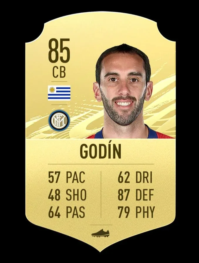 Diego Godín, futbolista que hasta la pasada temporada jugó en Inter de Milán, es el otro uruguayo que aparece en este ranking. Tiene un puntaje global de 85, tres menos que en FIFA 20. Está en el puesto 95. En FIFA 19 era el decimotercer mejor jugador del entretenimiento (tenía un puntaje de 90). Un año más tarde descendió 24 puestos.