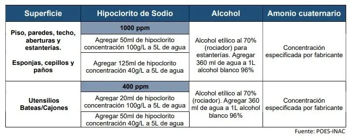 A continuación, se presenta una recomendación de concentraciones de desinfectante a utilizar y como prepararla: