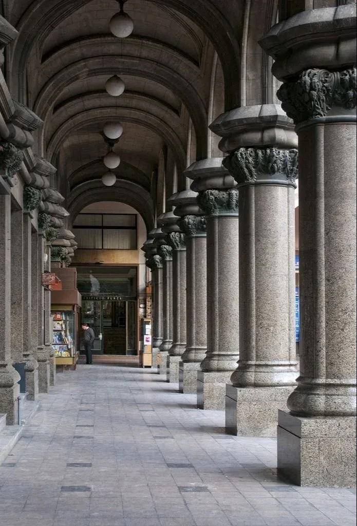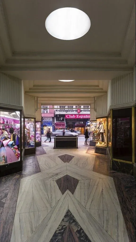 La galería comercial permite asomarnos a su ingreso y experimentar desde allí la atmósfera de un Montevideo renovado, pujante, que deseaba formar parte del conjunto de ciudades más modernas de América. Un Montevideo de cambios, de transformaciones tecnológicas, como la que experimenta esta construcción con la introducción de elementos muy innovadores, como la llamada viga Vierendeel que le permitirá salvar grandes luces entre pilares y lograr una estructura verdaderamente pionera en Sudamérica.