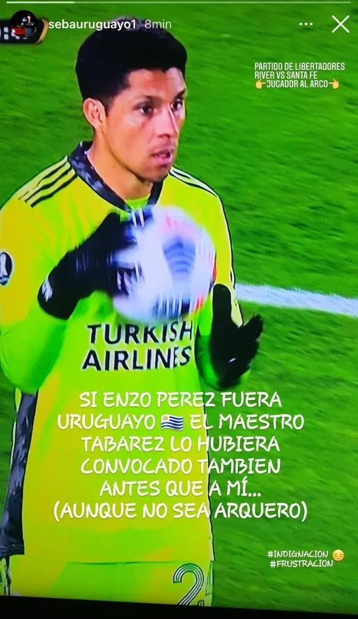 “Si Enzo Pérez fuera uruguayo el Maestro Tabárez lo hubiera convocado también antes que a mí (aunque no sea arquero)”, escribió en su cuenta Instgaram.
