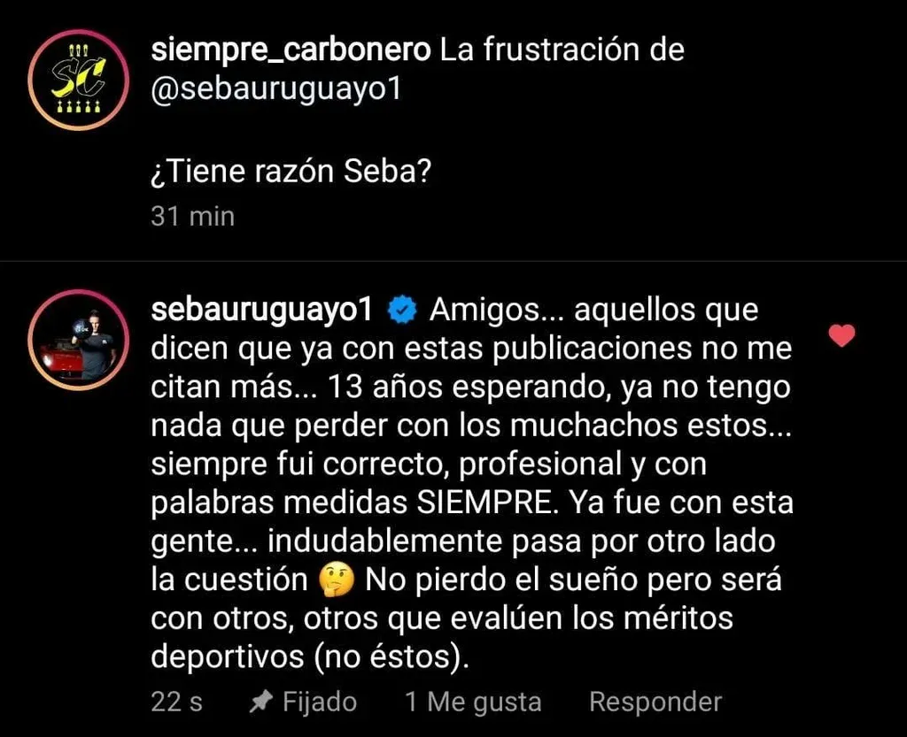Los mensajes de Sebastián Sosa al manifestar su frustración con la selección uruguaya