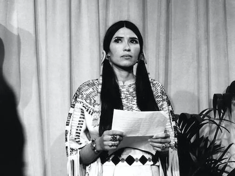 La actriz y activista Sacheen Littlefeather, que pertenece a las comunidades indígenas apache y yaqui, fue interrumpida en los Premios de la Academia de 1973 mientras explicaba por qué un Brando ausente no podía aceptar su Óscar al mejor actor por El Padrino.