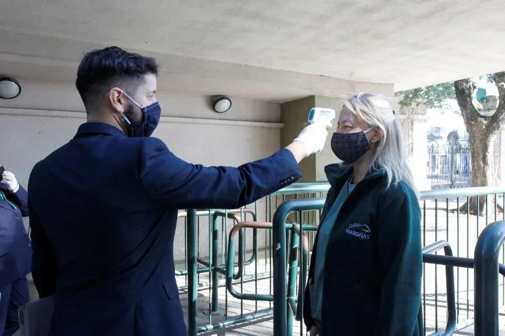 En la zona de ingreso se tomó la temperatura a todas las personas mientras se cotejaba la identidad en una lista de habilitados al ingreso.