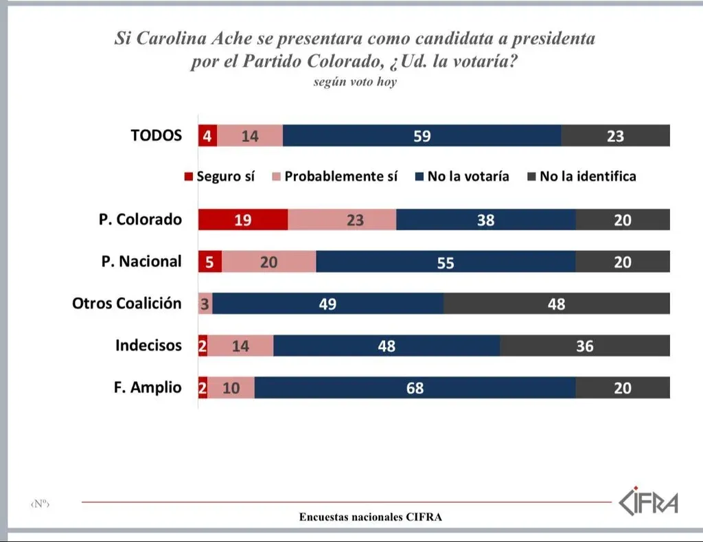 ¿Sabés lo que le dio? Que el 42% de los colorados dice que “seguro” o “probablemente” la votaría si se presentara como candidata a presidenta por el Partido Colorado.