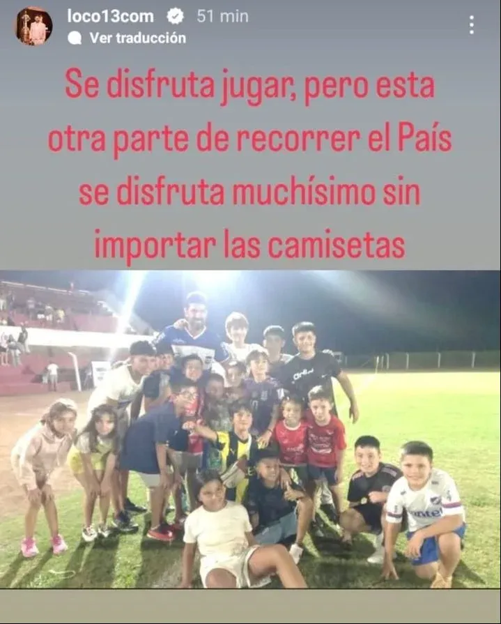 “Se disfruta jugar, pero esta otra parte de recorrer el País se disfruta muchísimo sin importar las camisetas”, escribió, en una foto junto a niños entre los que hay hinchas de Nacional, club del que es aficionado, y también de Peñarol.