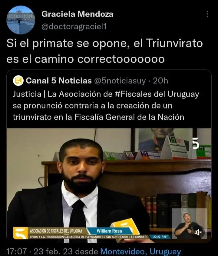 "Si el primate se opone, el Triunvirato es el camino correctoooooo", tuiteó.