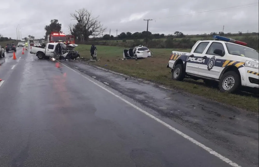 El hecho ocurrió en el kilómetro 397 de la Ruta 3. Una camioneta Nissan ocupada por cuatro hombres que viajaba hacia el norte del país chocó de frente con un auto Peugeot, en el que viajaban un hombre y una mujer.