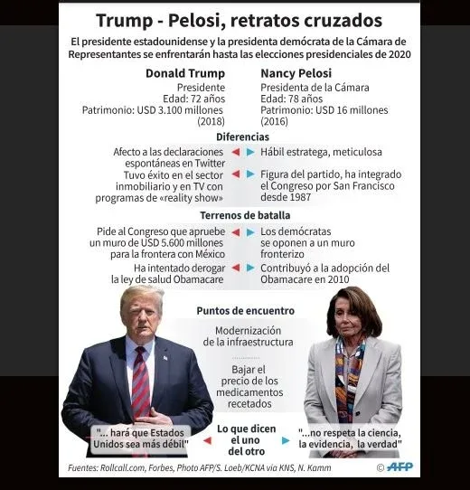 La novela tuvo un nuevo capítulo ayer en la Casa Blanca, cuando la líder de la cámara baja Nancy Pelosi, y el líder de la minoría demócrata en el Senado Chuck Schummer, se entrevistaron nuevamente con Trump buscando una cercamiento. La reunión no duró mucho: el presidente entró con caramelos, como para disminuir tensiones, pero rápidamente traslado la pregunta a Pelosi: “¿votarán un muro en 30 días si decido levantar el shutdown?”.