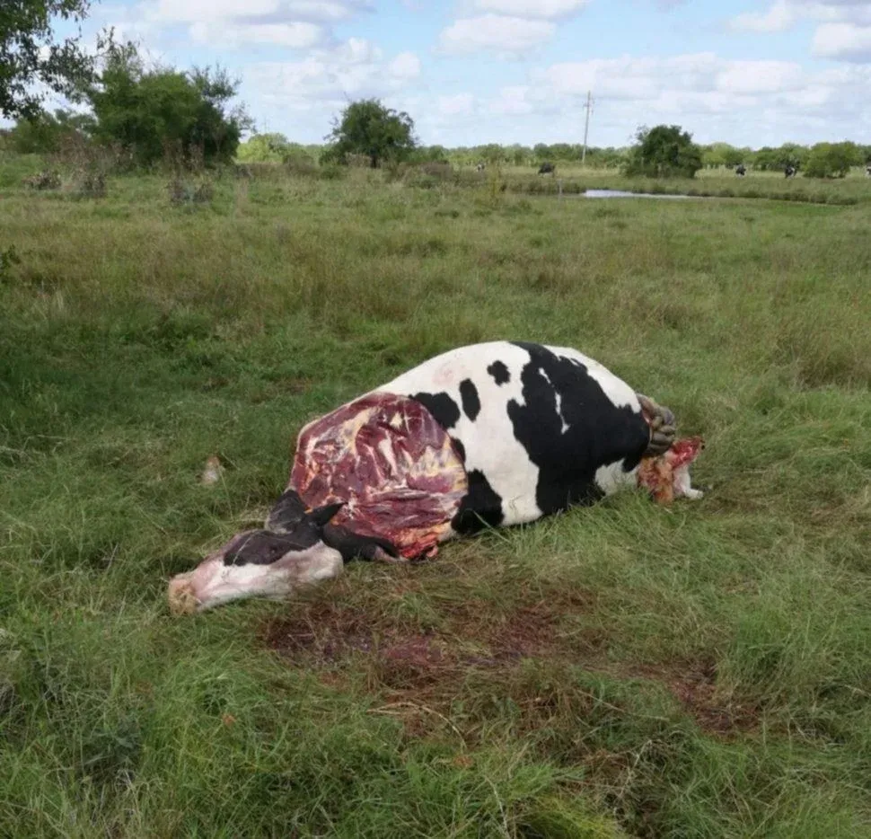 Otro caso sucedió en la noche del sábado 27 en el kilómetro 507 (Salto) de la ruta 3, donde se descuartizó a una vaca preñada, a punto de parir.