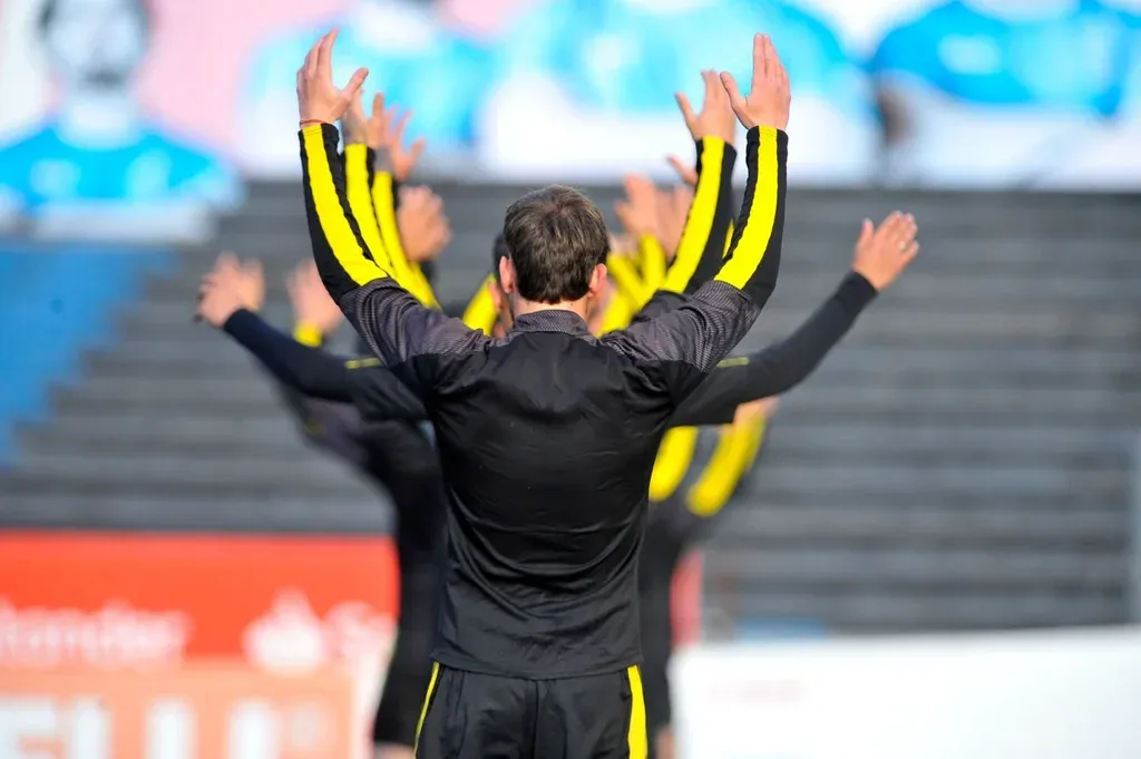 Bajo las órdenes de Juan Manuel Olivera, su ayudante Damián Macaluso, el preparador físico Enzo Di Paulo, y el entrenador de arqueros Lucas Muto, el plantel saltó al campo de juego del estadio Charrúa sobre la hora 17.00 luego de que la selección sub 20 femenina completara su entrenamiento.