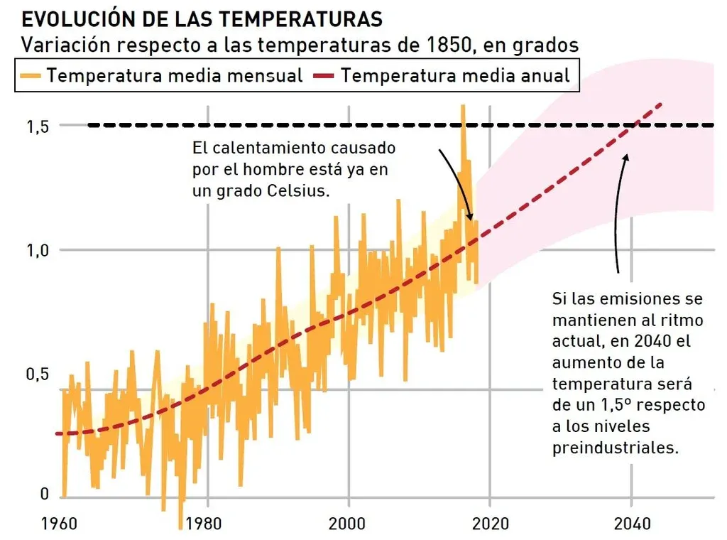 Figura 1 - Evolución de la temperatura mundial: Variación respecto a la temperatura de 1850, en grados.