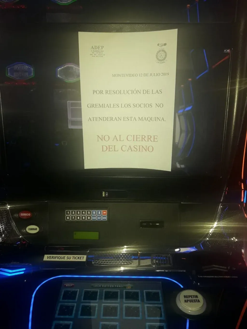 En medio de este conflicto, Adeom resolvió que a partir de este sábado no atenderán algunos slots del casino.