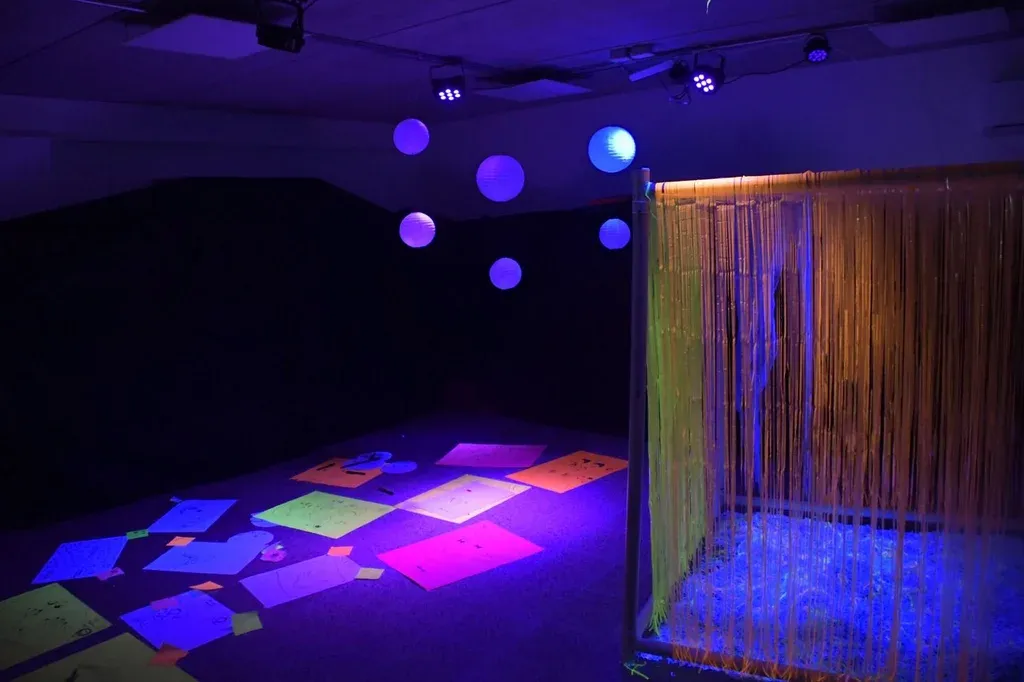 En el segundo piso de un edificio hecho a nuevo a medida de la propuesta pedagógica, hay un salón oscuro, con telas negras evitando el ingreso de la luz y dentro solo tubos violetas que hacen brillar las distintas estaciones temáticas. Están cerrando un ciclo sobre la luz, con juegos y actividades. Los alumnos se motivan y se olvidan qué hora es. Nada los interrumpe, porque la hora de salida al recreo es acordada con la maestra y no hay timbres.
