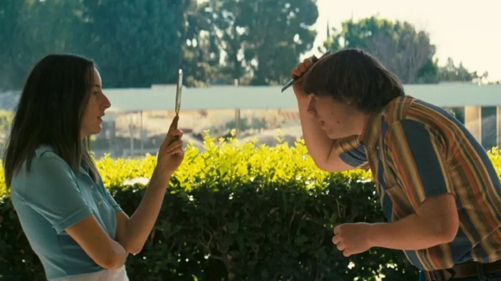Licorice Pizza —el título jamás se explica, pero hace referencia a los discos de vinilo y un local californiano de la época que los vendía— fue escrita por PTA en base a los recuerdos de un amigo, Gary Goetzman, que trabaja en la industria y que de niño fue actor en algunas producciones de Lucile Ball, entre ellas Los tuyos, los míos y los nuestros, a la que la película se refiere en un momento. Y si bien es probable que los rostros nada hegemónicos de Alana Haim y Cooper Hoffman hayan aparecido en su cabeza después del momento de teclear la historia, parece estar hecha para ellos. Hoffman, hijo del enorme Philip Seymour Hoffman —largo colaborador de PTA—, jamás se había tomado en serio la actuación hasta este momento, y demuestra ser mucho más que algunos gestos que recuerdan a su viejo, que murió de una sobredosis en 2014.