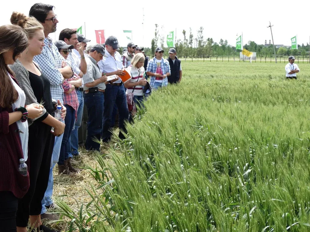 Juan Samuelle Jornada técnica, en un predio con ensayos de variedades de trigos. Su director ejecutivo, el ingeniero agrónomo Marcos Guigou, recordó que la firma surgió en marzo de 2003 con el fin de transformarse en exportadora de sus propios productos.