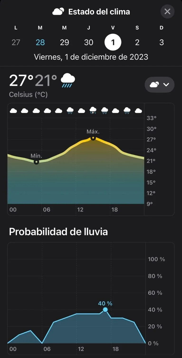 Pronóstico del viernes 1° de diciembre de la aplicación Clima de Apple