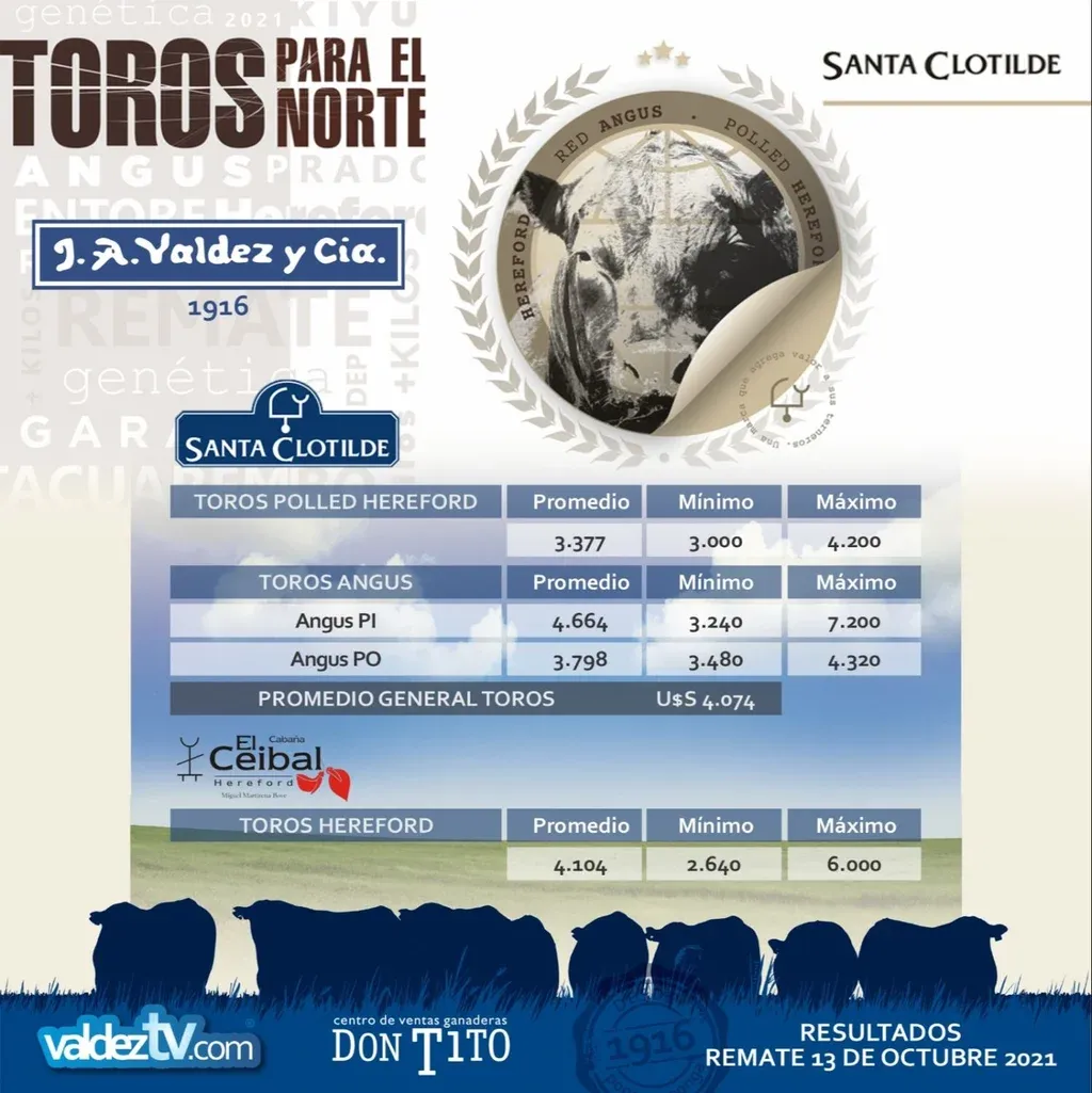 Valdez y Cía vendió Hereford y Angus en Don Tito, en el que fue "un excelente remate" de la cabaña Santa Clotilde, comentó Alejandro "Nano" Núñez
