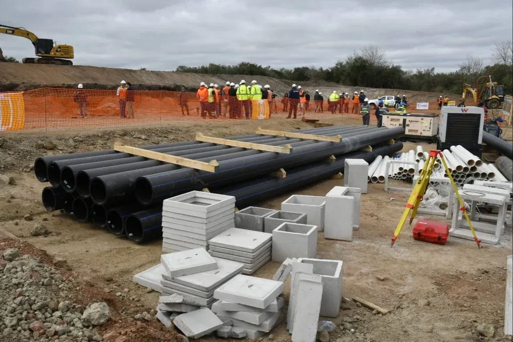 La obra se realizó en tiempo récord y las tuberías llevarán el agua hasta la represa de Belastiquí en el río Santa Lucía, desde donde puede ser bombeada hasta la planta potabilizadora de Aguas Corrientes.