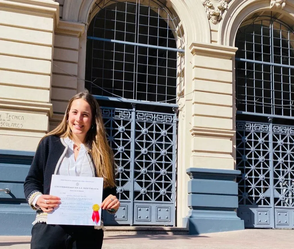 “Mi primer trabajo me lo consiguió el padre de una amiga, Edison Rosas, un ingeniero agrimensor que me abrió las puertas en la Fundación Ricaldoni donde trabajé en la parte legal haciendo un relevamiento de todos los inmuebles que tiene AFE en el país”.
