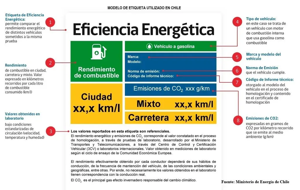 En Chile, el sello que comenzó a operar en 2013 para vehículos livianos se amplió en 2017 a vehículos medianos, comerciales y de diferente matriz energética como los modelos que utilizan electricidad o cuyo motor es híbrido. Es además el primer país de América Latina que implementó el etiquetado de forma obligatoria, de acuerdo a información del gobierno de ese país. También es una metodología extendida en Europa.
