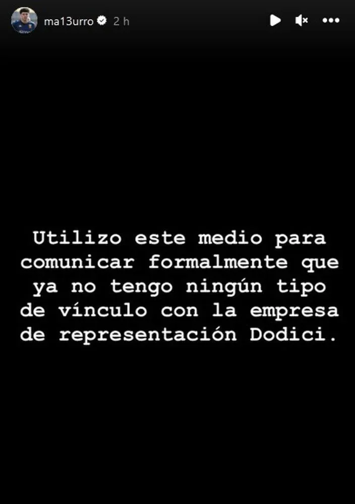"Utilizo este medio para comunicar formalmente que ya no tengo ningún tipo de vínculo con la empresa de representación Dodici", informó Matturro.