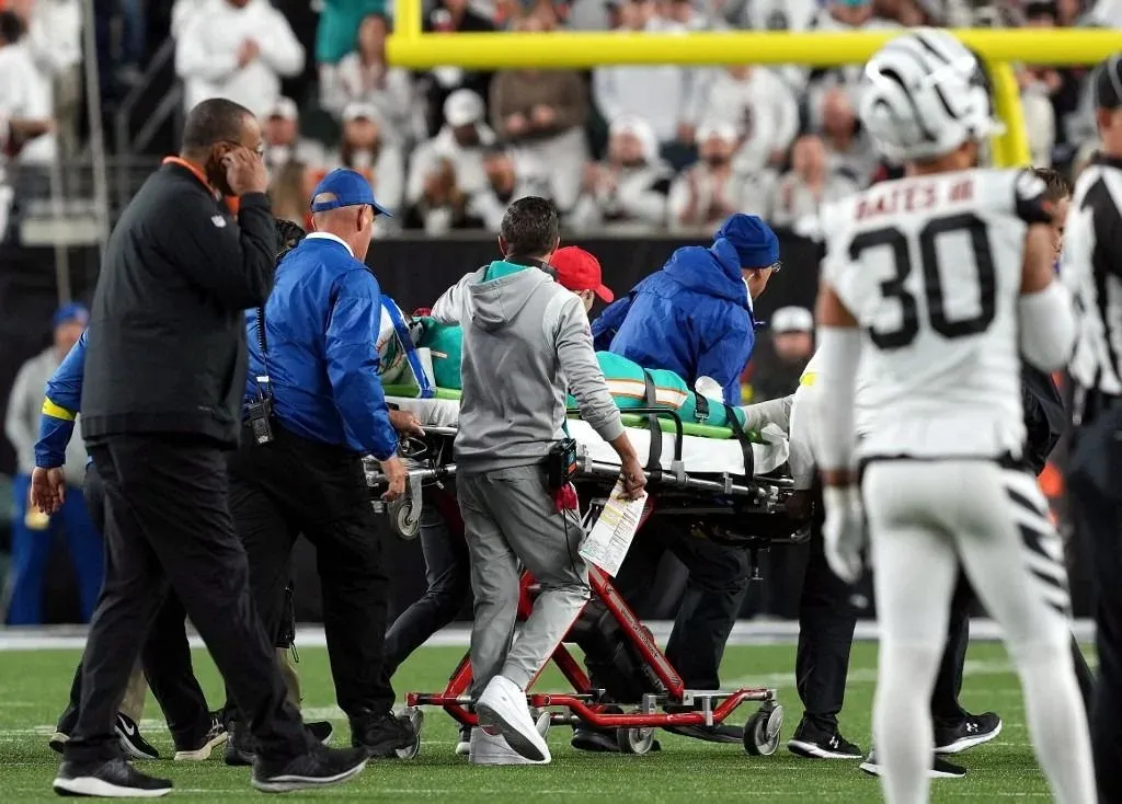 El joven Tua Tagovailoa, mariscal de campo de los Miami Dolphins, fue retirado en camilla y trasladado a un hospital por un fuerte golpe en la cabeza sufrido el jueves en la primera derrota de la temporada de NFL ante los Cincinnati Bengals.