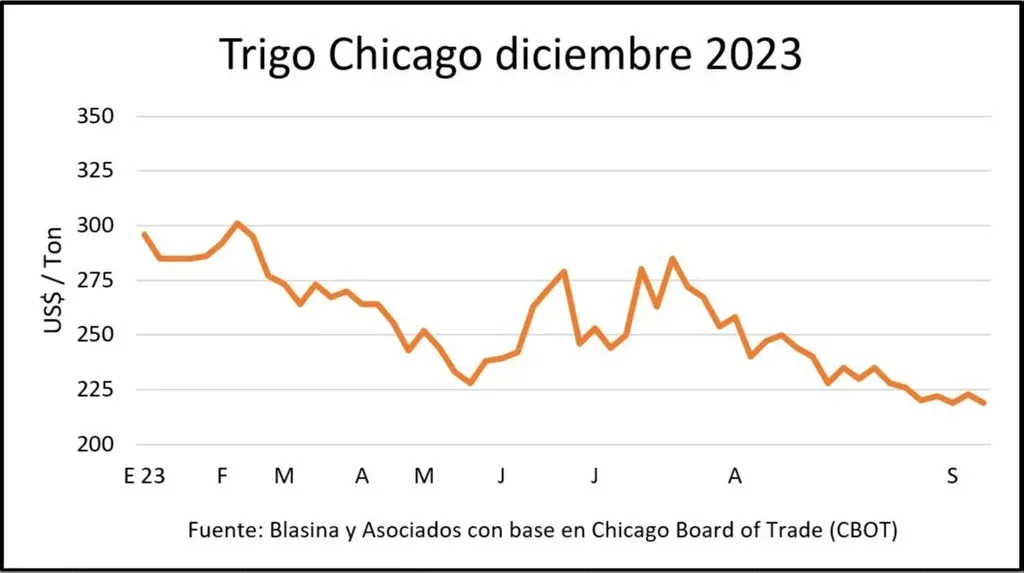 En el mercado internacional, la voluminosa y competitiva cosecha de trigo rusa mantiene presión sobre los precios. En Chicago, el trigo posición diciembre perdió todas las ganancias obtenidas a lo largo de la semana en el último día de operaciones y se mantuvo en los mismos US$ 218 por tonelada del cierre de la semana anterior.